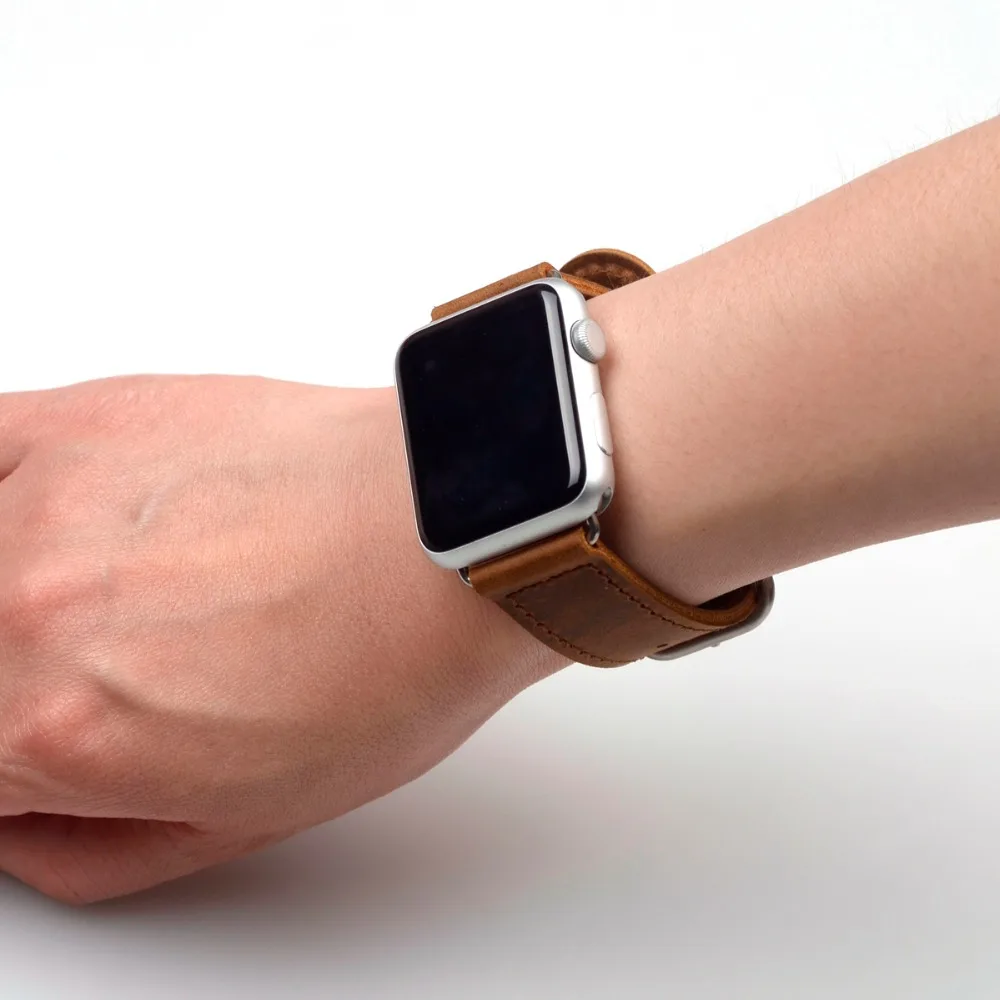 Eache Crazy Horse Leather Brown Watchband For Apple Watch Bands 38mm 42mm Silver Black Hardware Can Fit For Series 1 2 3 Watchbands Aliexpress